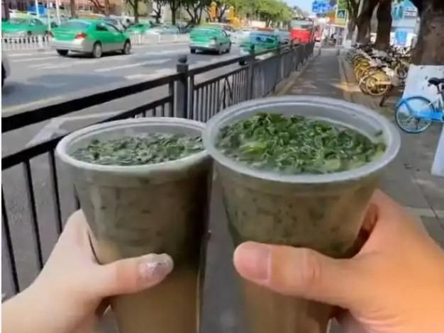 Selain itu, ada juga penjual yang menambahkan daun bawang yang belum dipotong sebagai hiasan es kopinya. “Spring Onion Coffee Going viral di China,” tulisnya sebagai caption.