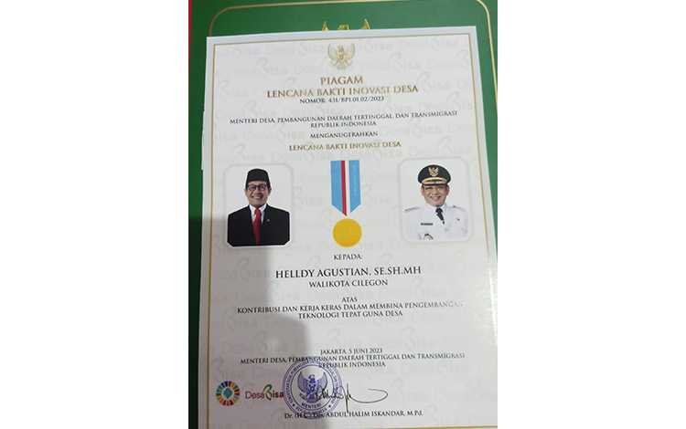 BISNISBANTEN.COM – Walikota Cilegon Helldy Agustian meraih penghargaan bergengsi tingkat nasional, yakni Satya Lencana Bakti Inovasi Desa dari Kementerian Desa Pembangunan Daerah Tertinggal dan Transmigrasi (Kemendes PDTT) RI pada Event Teknologi Tepat Guna (TTG) Nusantara ke-24 di Provinsi Lampung, Rabu (7/5/2023). Penghargaan diterima Helldy sebagai kepala daerah yang berhasil berkontribusi dan kerjas keras membina pengembangan TTG Desa.