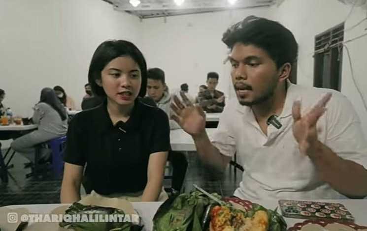 Thariq Halilintar memilih mencicipi nasi bakarnya di tempat dan ditemani Melati yang turut menjelaskan varian nasi bakar miliknya.