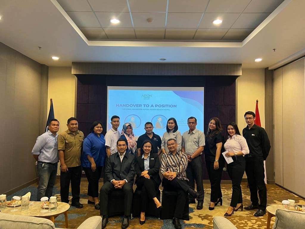 Handover position atau serah terima jabatan ini dilakukan di Ruangan Black Forest, Lantai 6 Aston Anyer Beach Hotel, Senin (31/10). Yani Kamilah sendiri resmi bergabung di Aston Anyer Beach Hotel pada 2020 lalu sebagai hotel manager.